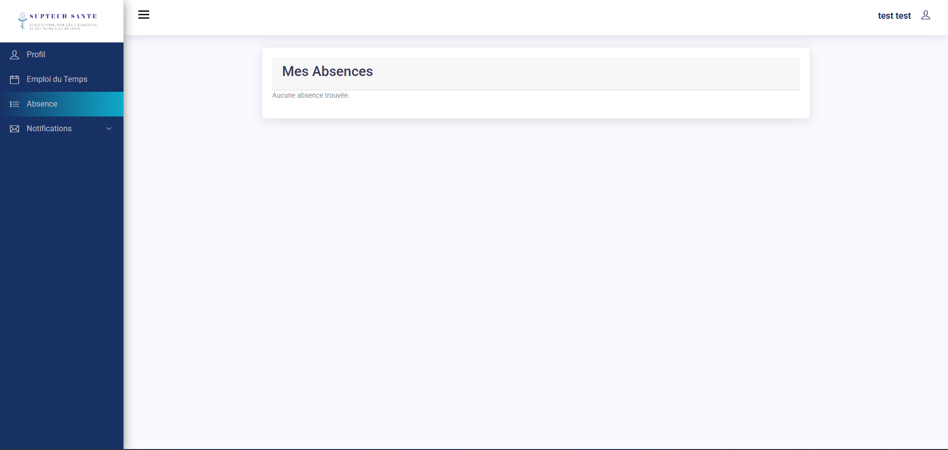 Pour accéder au votre absence choisissez la fonctionnalité “Absence” dans le menu à