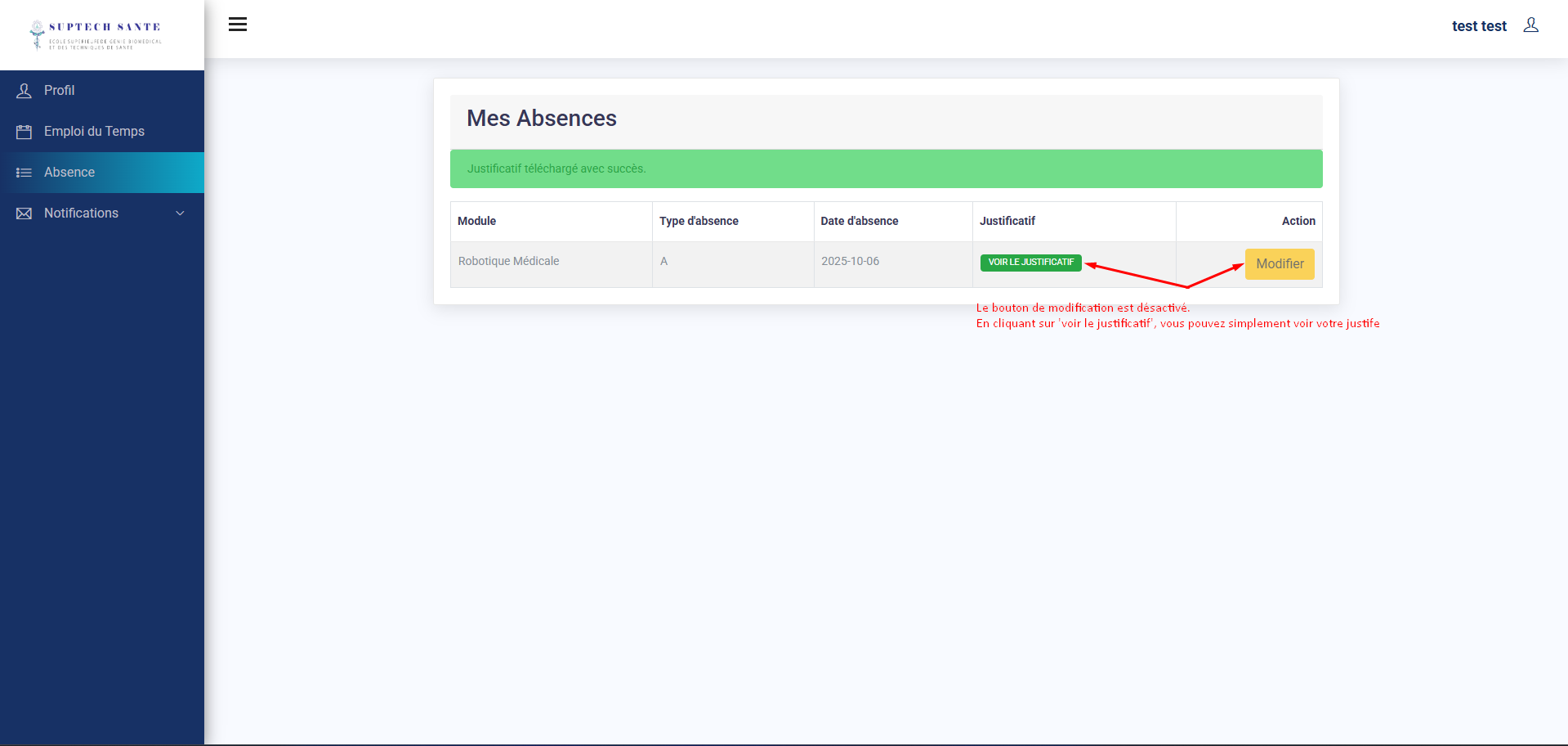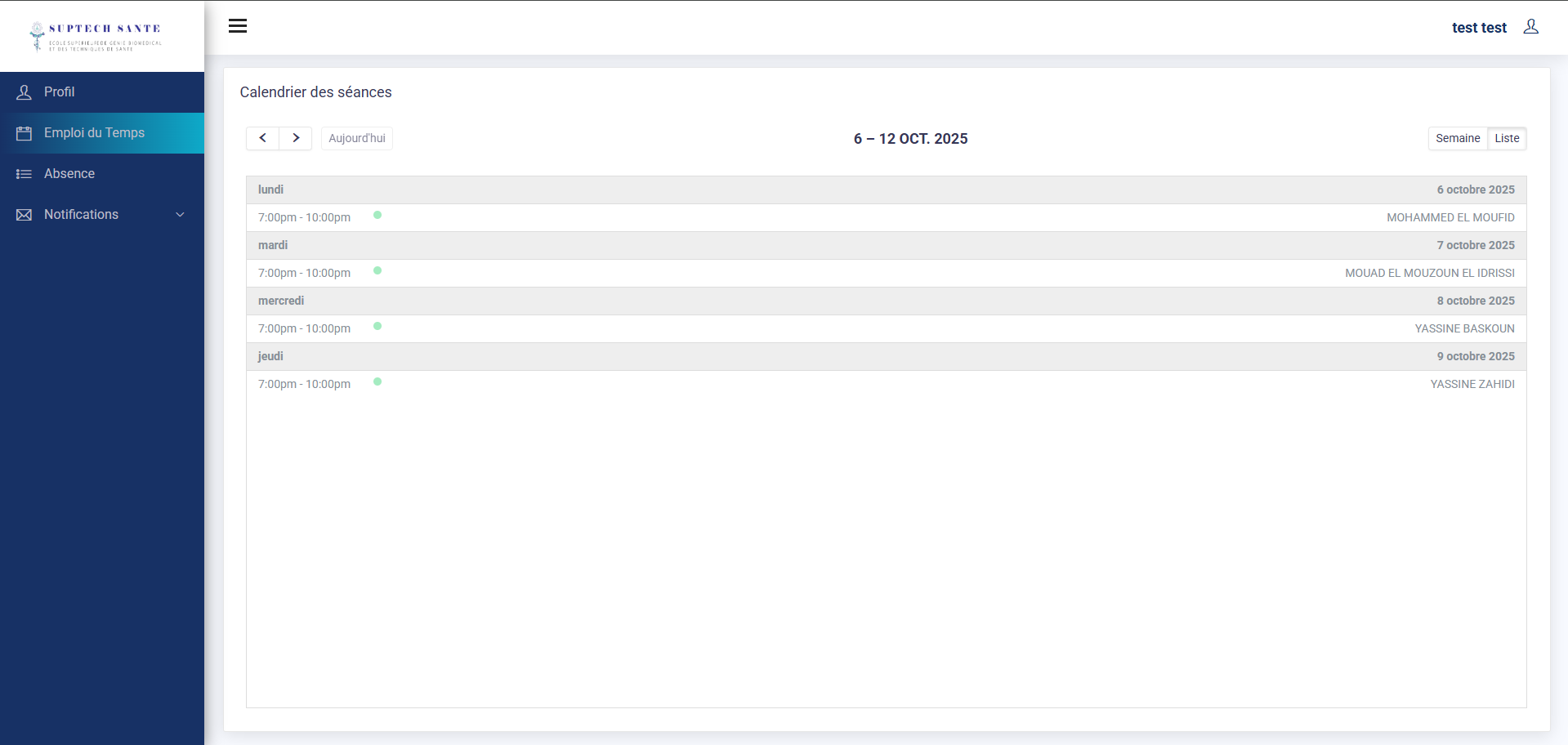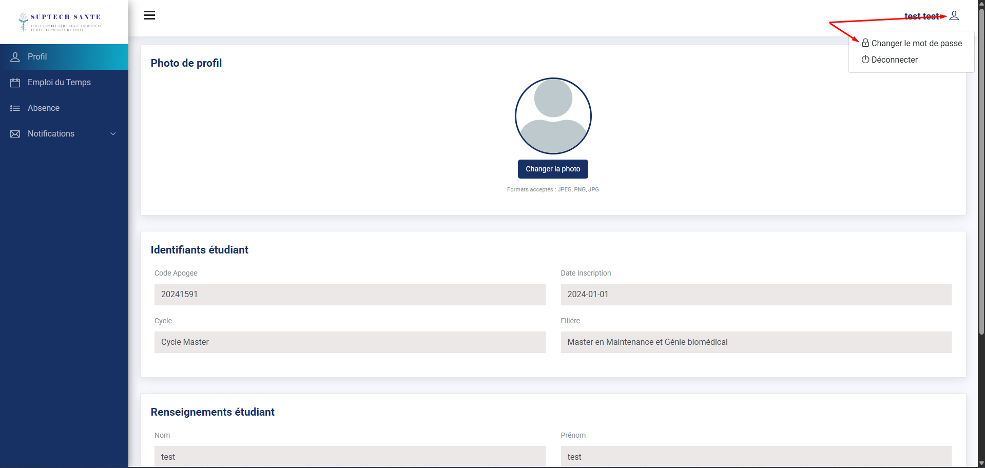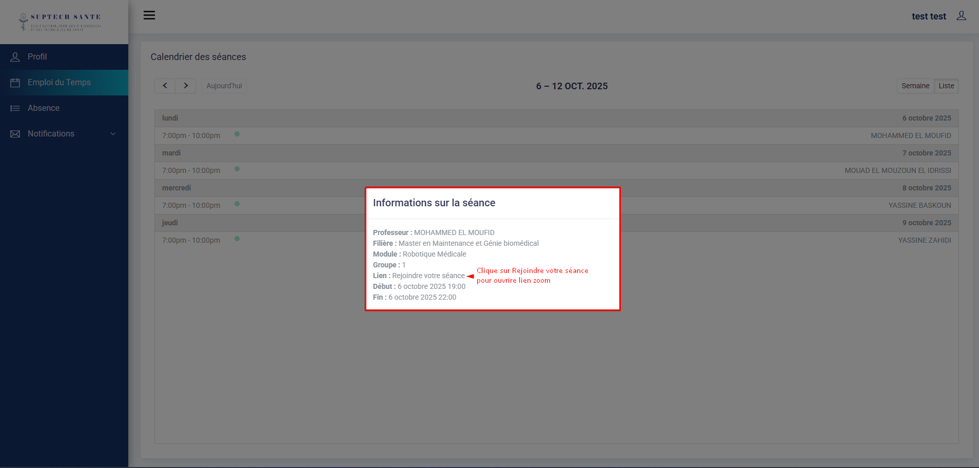 L'interface d'accueil étudiant est accessible une fois que vous authentifié.