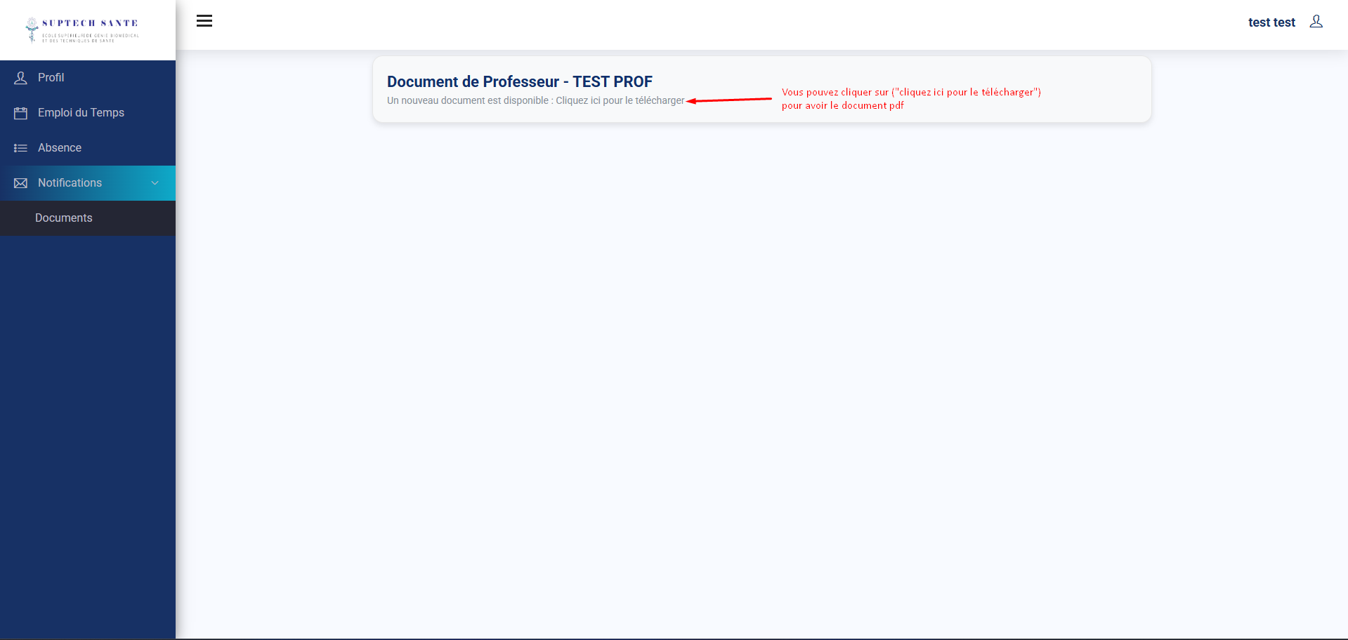 Cette interface vous permet de consulter les documents envoyés par vos professeurs.