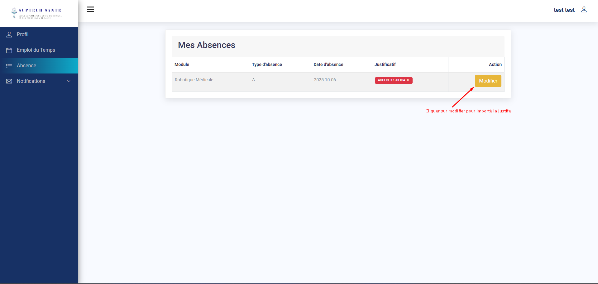 Pour accéder au votre absence choisissez la fonctionnalité “Absence” dans le menu à