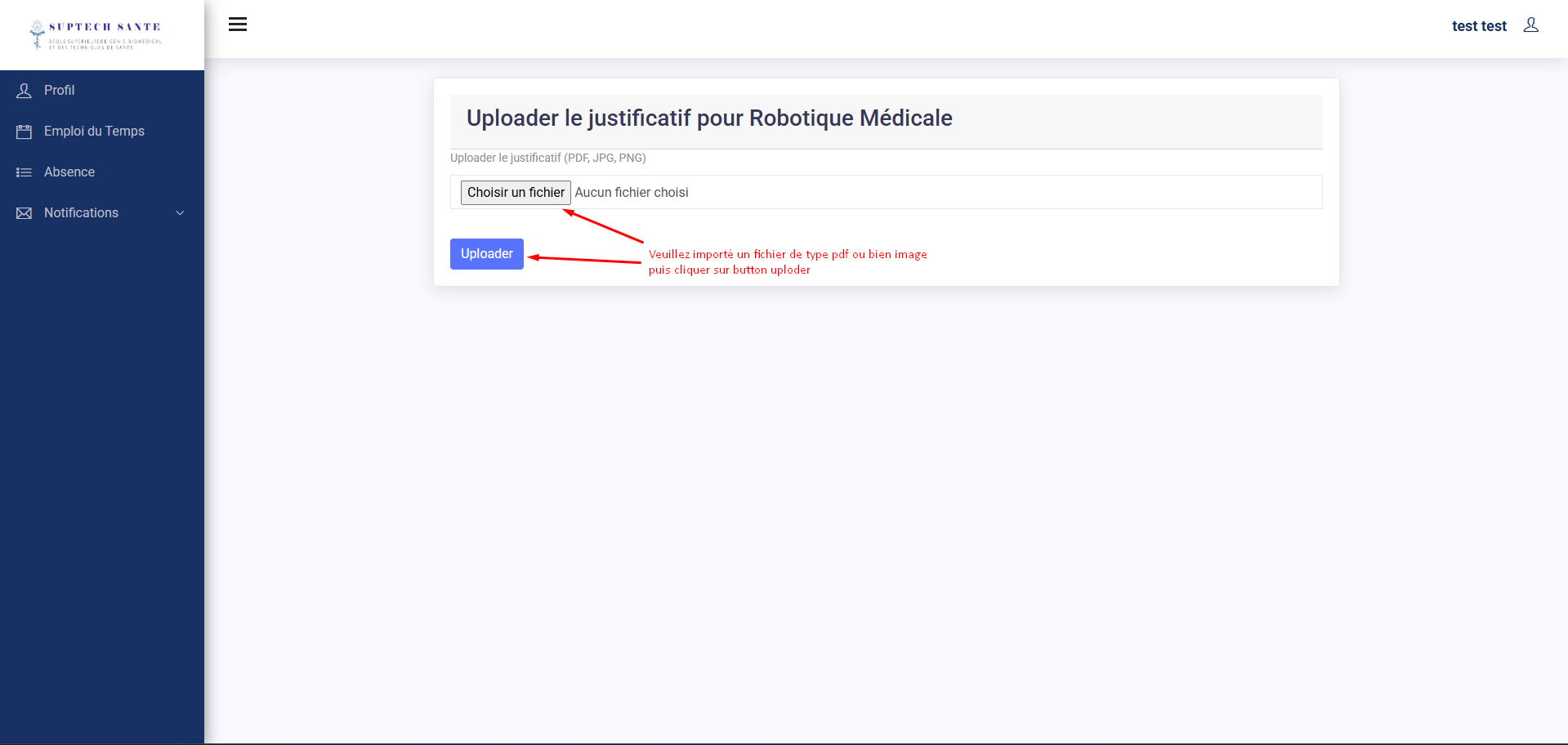 L'interface d'accueil étudiant est accessible une fois que vous authentifié.