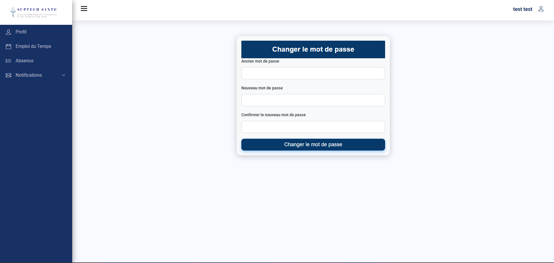 entrer nouveau mot de passe et le confirmer puis cliquer sur changer le mot de passe.